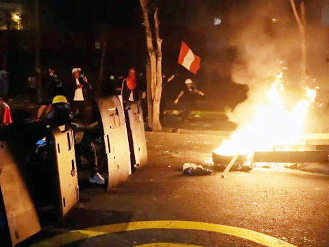 UN MUERTO Y 100 HERIDOS EN PROTESTA MASIVA TRAS INSTALARSE NUEVO GOBIERNO EN PERÚ
