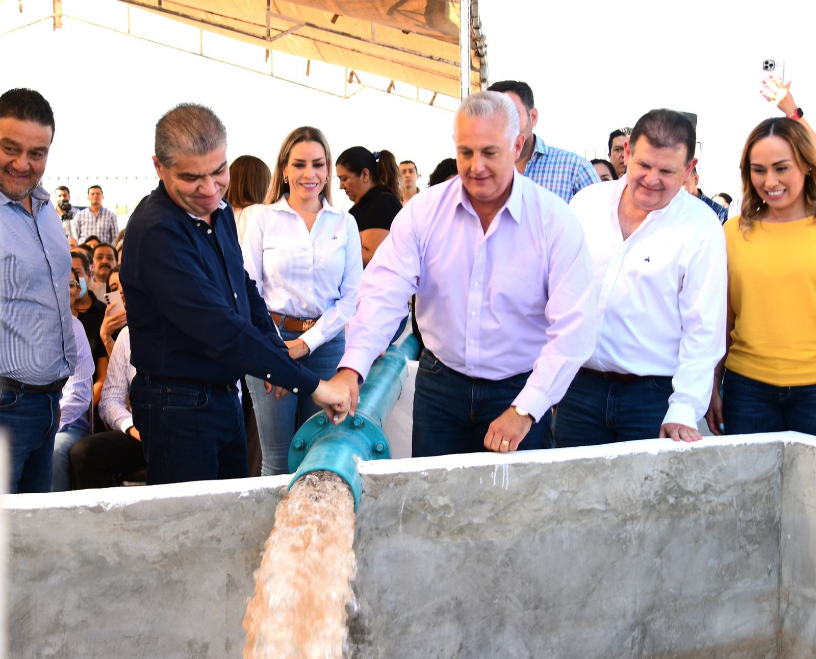 El gobernador Miguel Ángel Riquelme Solís, acompañado por el alcalde Román Alberto Cepeda González, inauguró el pozo de agua de “Senderos”, el cuarto en lo que va del año en esta ciudad, en el que se invirtieron más de 15 millones de pesos y que beneficiará a más de 20 mil ciudadanos.
