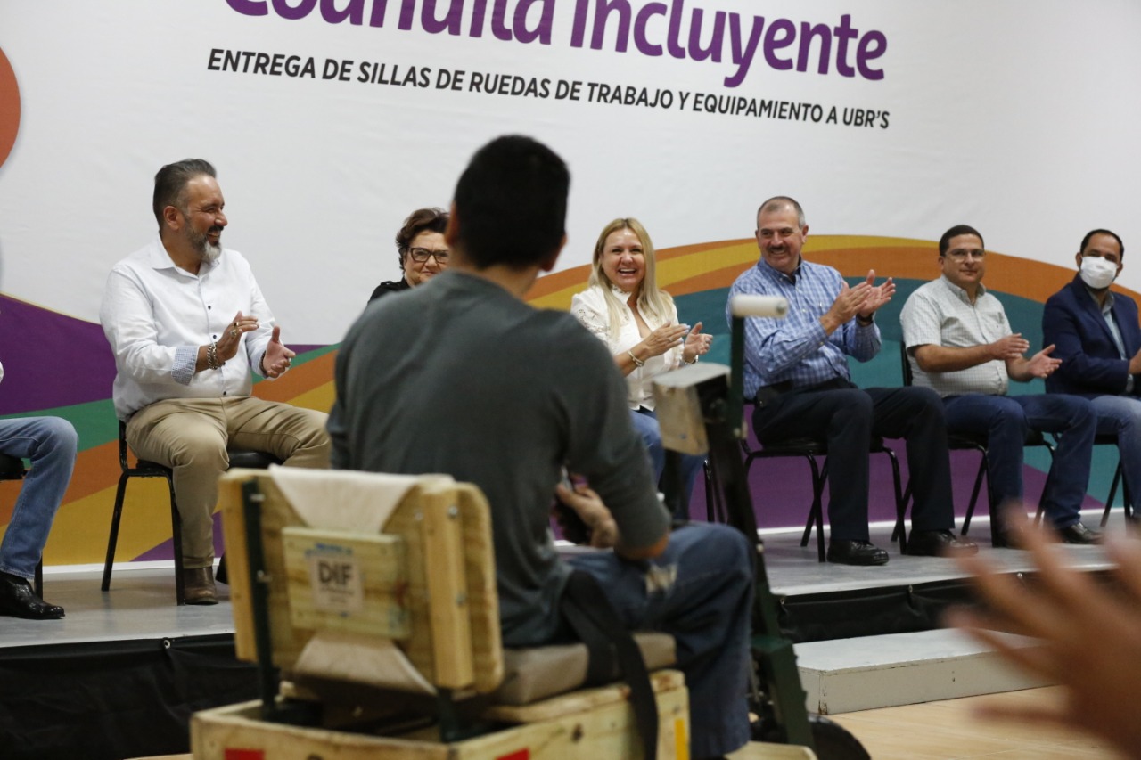 La Presidenta Honoraria del DIF Coahuila, Marcela Gorgón Carrillo, encabezó en Saltillo la entrega de sillas de ruedas de trabajo, así como de equipamiento.