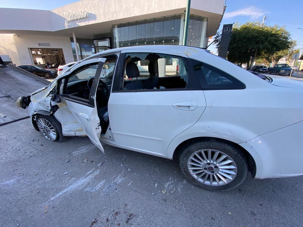 La conductora manifestó que presuntamente un vehículo le cerró el paso, por lo que la llevó a perder el control de su vehículo, por ello, se impactó contra una banqueta que utilizó como rampa para luego volcar sobre un barandal metálico que derribó, y finalmente una pieza de su unidad salió volando hacia el cristal del establecimiento.