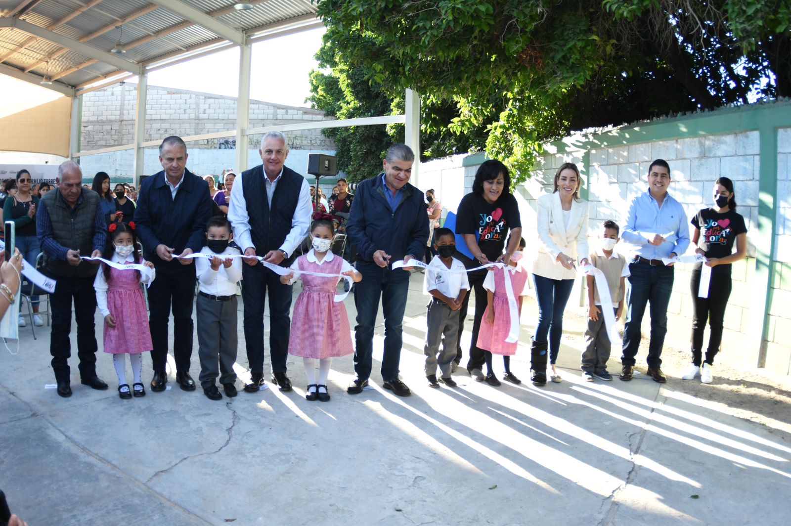 El gobernador Miguel Ángel Riquelme Solís entregó una techumbre en el Jardín de Niños «Rosa María Armijo», de la Colonia Lázaro Cárdenas, de Torreón, que beneficiará a 182 alumnas y alumnos, y cuya inversión fue de un millón 251 mil 482 pesos.