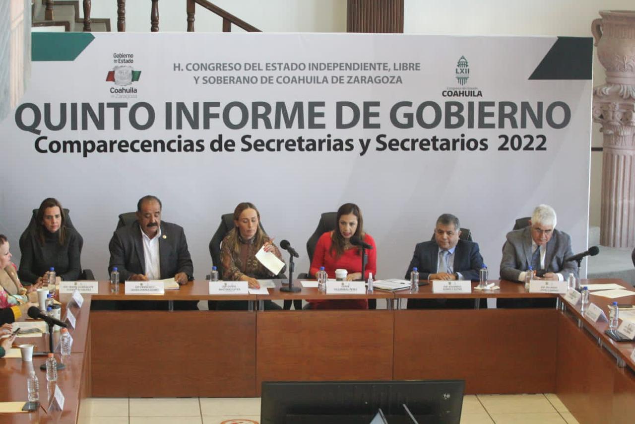 Hoy en Coahuila se garantiza la seguridad de todos sus habitantes, sus indicadores lo posicionan cómo una de las entidades más seguras a nivel nacional; además de mantener un trabajo coordinado con el Ejército Mexicano, la Guardia Nacional y los tres órdenes de Gobierno, así lo destacó, Sonia Villarreal Pérez, Secretaria de Seguridad Pública, al comparecer ante los diputados de la LXIX Legislatura del Congreso local para realizar el análisis del Quinto Informe de Gobierno del Ejecutivo Estatal.