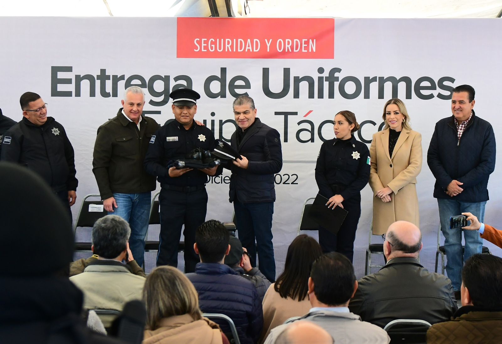 Como parte del reforzamiento de las acciones para mantener la paz y la seguridad en el estado, el gobernador Miguel Ángel Riquelme Solís entregó uniformes y equipo táctico a los elementos de la Dirección Municipal de Seguridad Pública (DSPM) de Torreón, con una inversión de 15 millones de pesos.