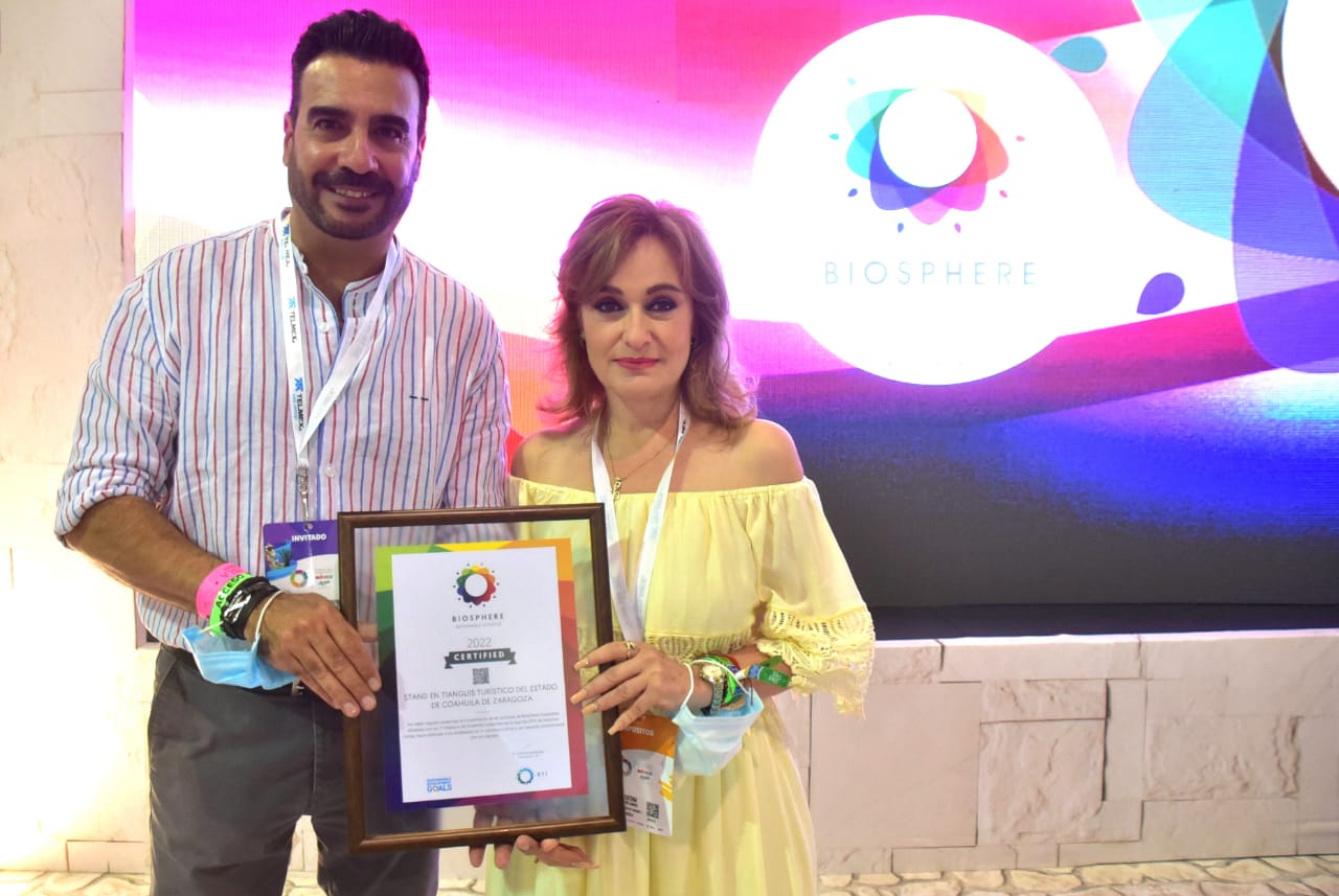 Además, dentro del Tianguis Turístico México 2022 en Acapulco, el stand de Coahuila recibió la certificación internacional en materia de sustentabilidad “BIOSPHERE”, siendo el único Estado del País en recibirla.