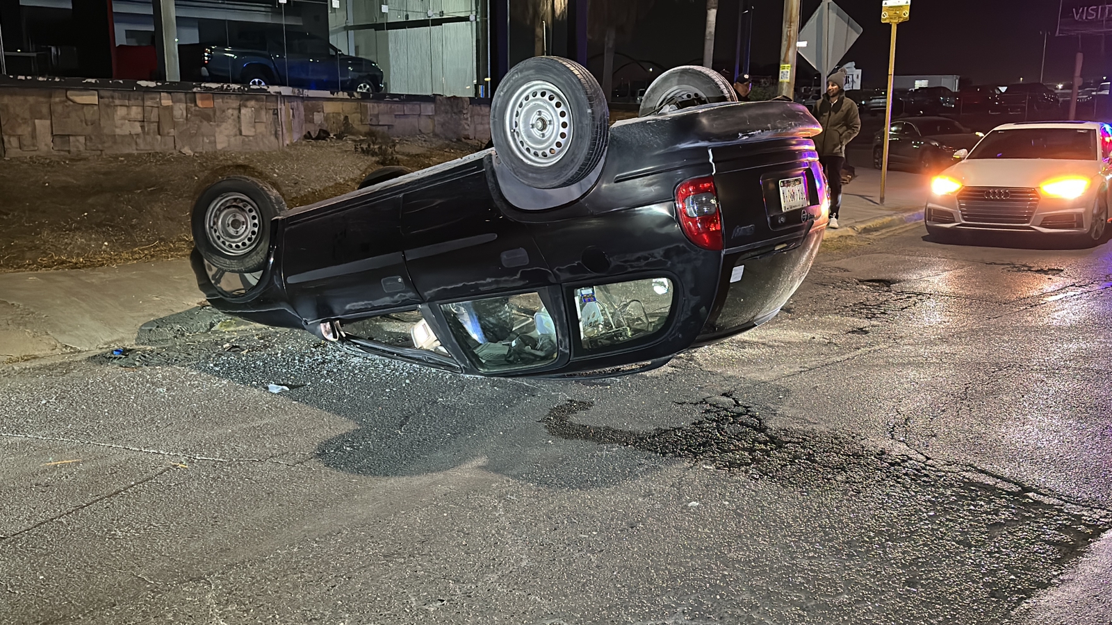 Al llegar al cruce con el bulevar Rufino Tamayo, el conductor perdió el control y salió del camino hasta caer con los neumáticos hacia arriba quedando sobre la lateral, para luego huir del lugar abandonando el vehículo.