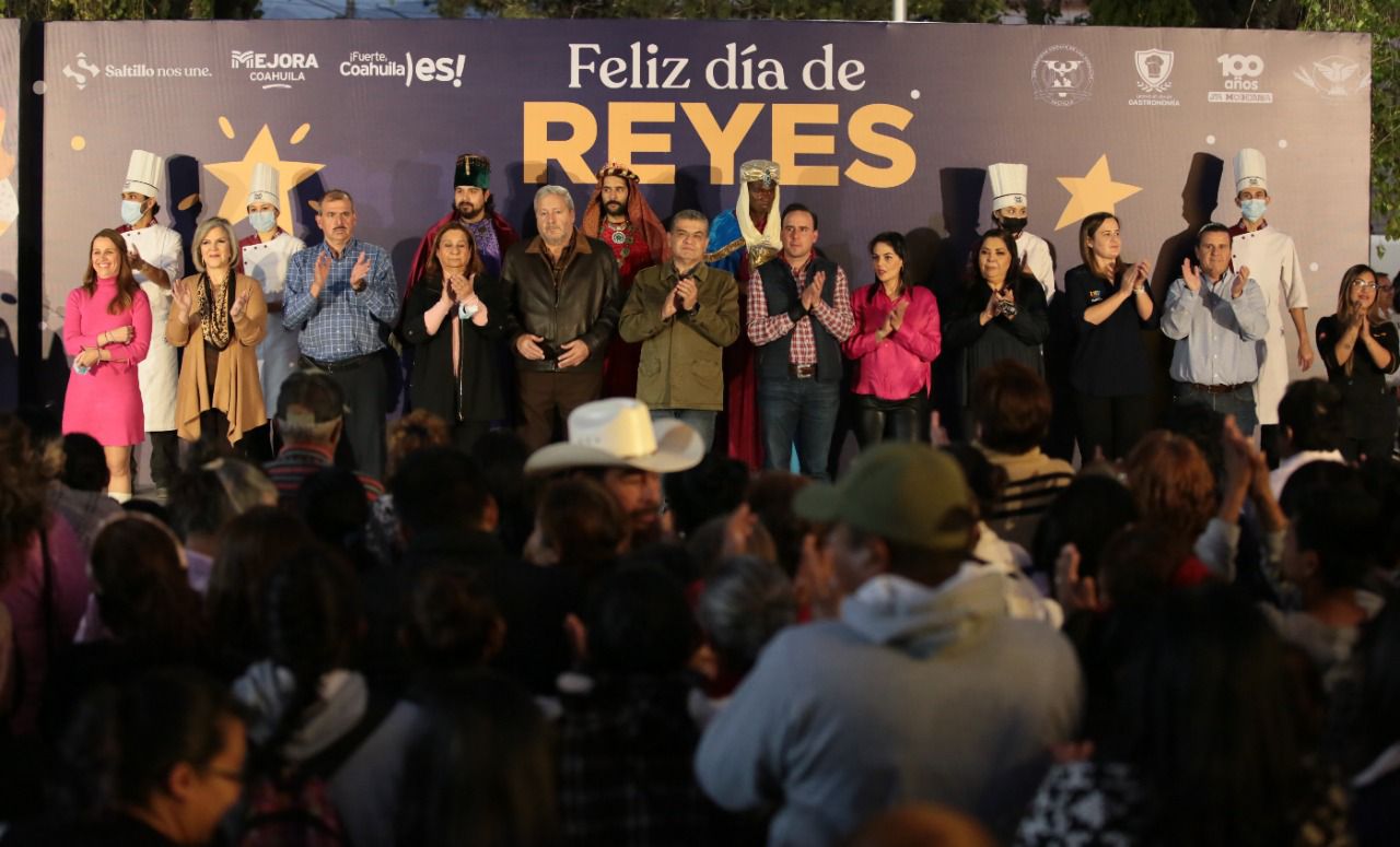 En este lugar se reunieron cientos de familias para convivir y disfrutar de la tradicional Rosca de Reyes, que repartieron entre los asistentes, además, Manolo Jiménez Salinas, Secretario de Inclusión y Desarrollo Social del Estado, y Beatriz Dávila de Fraustro, Presidenta Honoraria del DIF Saltillo.