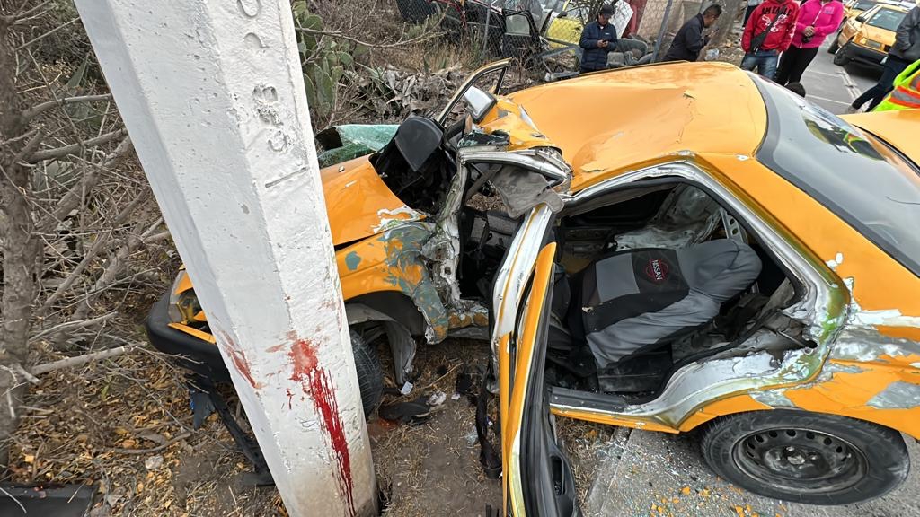 Al perder el control de su taxi Nissan Tsuru, un ruletero quedó prensado en su unidad cuando viajaba con dirección al oriente por el bulevar Otilio González, pues al pasar el cruce con la Calle 17, salió del camino y se impactó de lleno contra un poste de concreto.