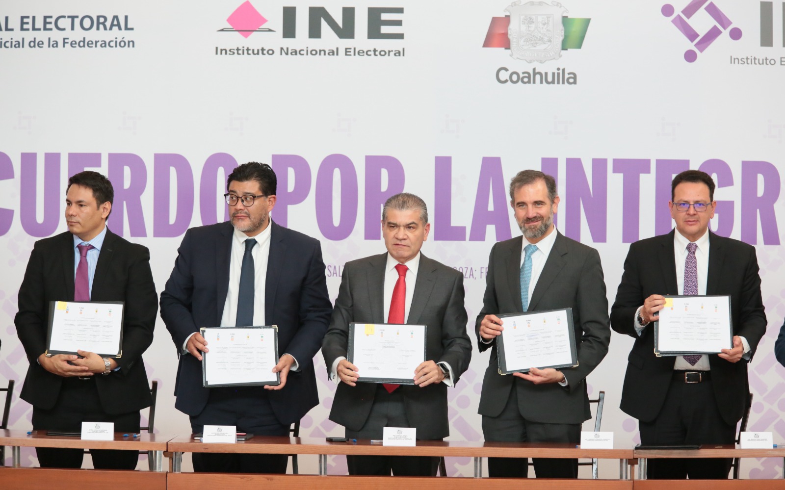 En la firma de este acuerdo estuvieron presentes Reyes Rodríguez Mondragón, Magistrado Presidente del Tribunal Electoral del Poder Judicial de la Federación; Lorenzo Córdova Vianello, consejero presidente del Instituto Nacional Electoral; Sergio Díaz Rendón, magistrado presidente del Tribunal Electoral de Coahuila, y Rodrigo Germán Paredes Lozano, consejero presidente del IEC.