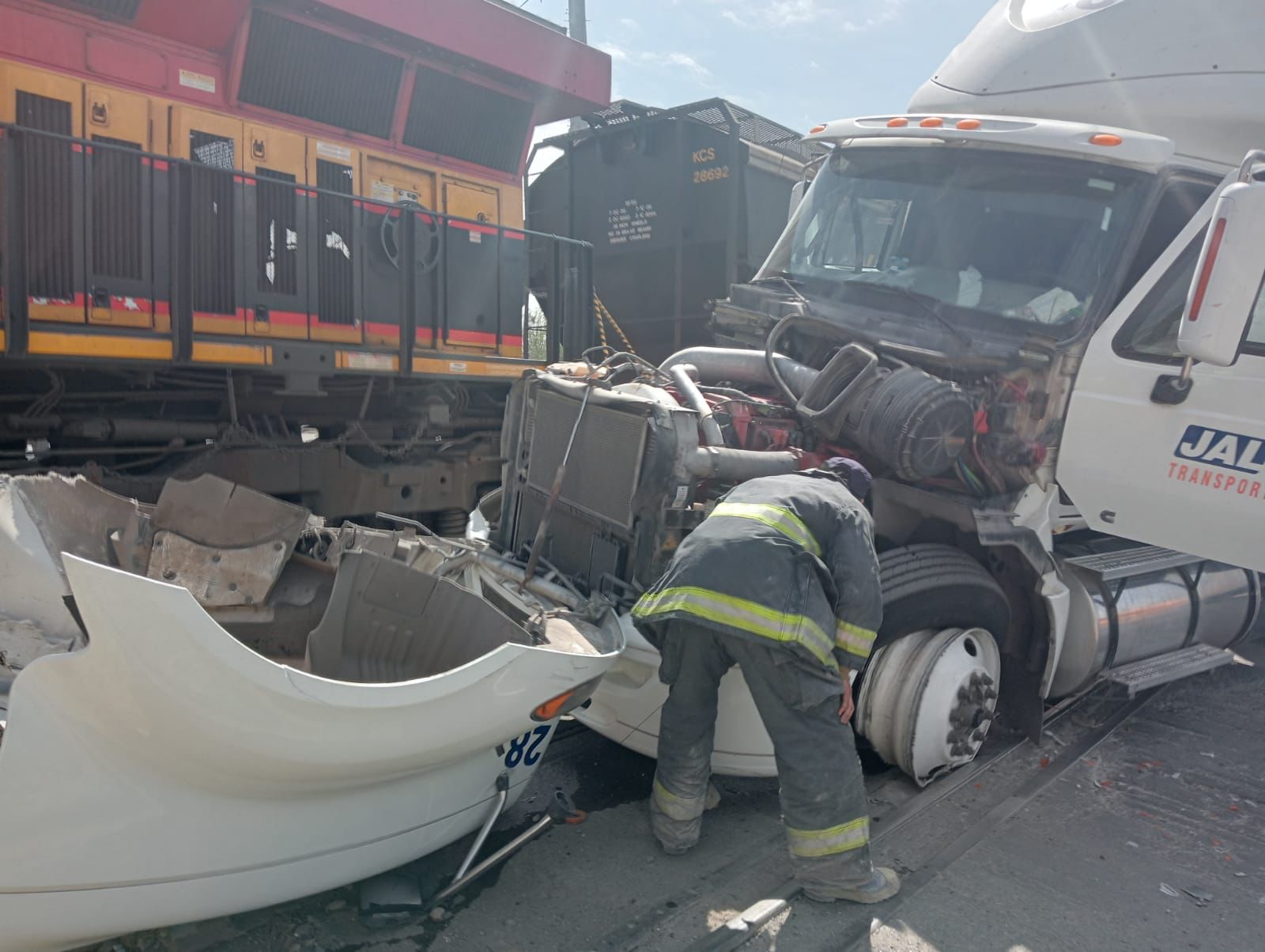 Una vez más un imprudente trailero intentó ganarle el paso al tren, en el cruce de la carretera estatal Los Pinos y las vías del ferrocarril en el municipio de #RamosArizpe.