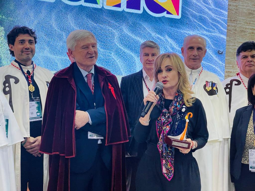 Dentro de su agenda de actividades del lunes 27, la secretaria Ramos Ramos recibió un reconocimiento por parte de la Orden del Camino de Santiago en España, por su apoyo y colaboración.