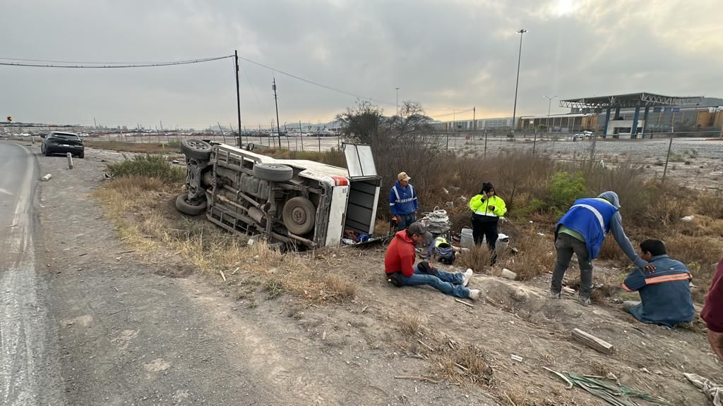 Un grupo de 5 trabajadores resultaron lesionados al sufrir una aparatosa volcadura esta mañana, cuando el vehículo en el que viajaban, volcara en una curva del bulevar Vito Alessio Robles, a la altura de los patios de la GM, que se dirigía rumbo a la carretera antigua a Monclova. Dos ambulancias de la Cruz Roja acudieron al lugar para atender el reporte, cuyos paramédicos valoraron y trasladaron a los heridos a diversos hospitales. Oficiales de Tránsito Municipal tomaron conocimiento del percance.