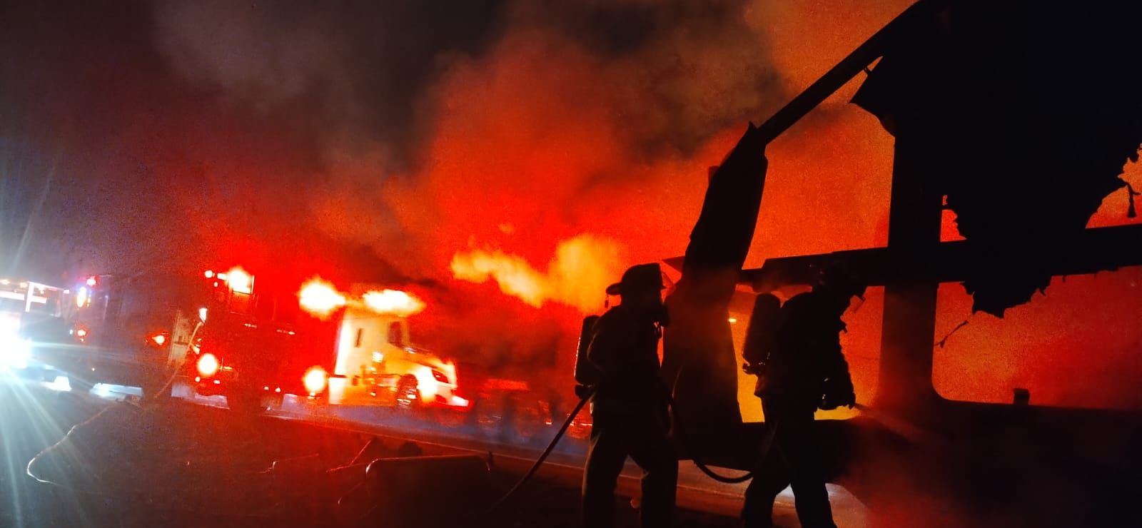 Un fuerte incendio en una pesada unidad que se dedica a transportar vehículos, mejor conocida como “madrina” se incendio durante esta madrugada en el kilómetro 43 del Libramiento Norponiente, lo que movilizó a los bomberos de #RamosArizpe. El conductor de 48 años de edad, al desplazarse por la mencionada vía con dirección hacia Querétaro, se percató de que aparentemente las balatas traseras del segundo remolque, presentaron una falla mecánica que inició el fuego. Afortunadamente no resultaron personas lesionadas, únicamente daños materiales, además de que el trailer viajaba vacío, sin autos nuevos a bordo, tomando conocimiento personal de la Guardia Nacional.