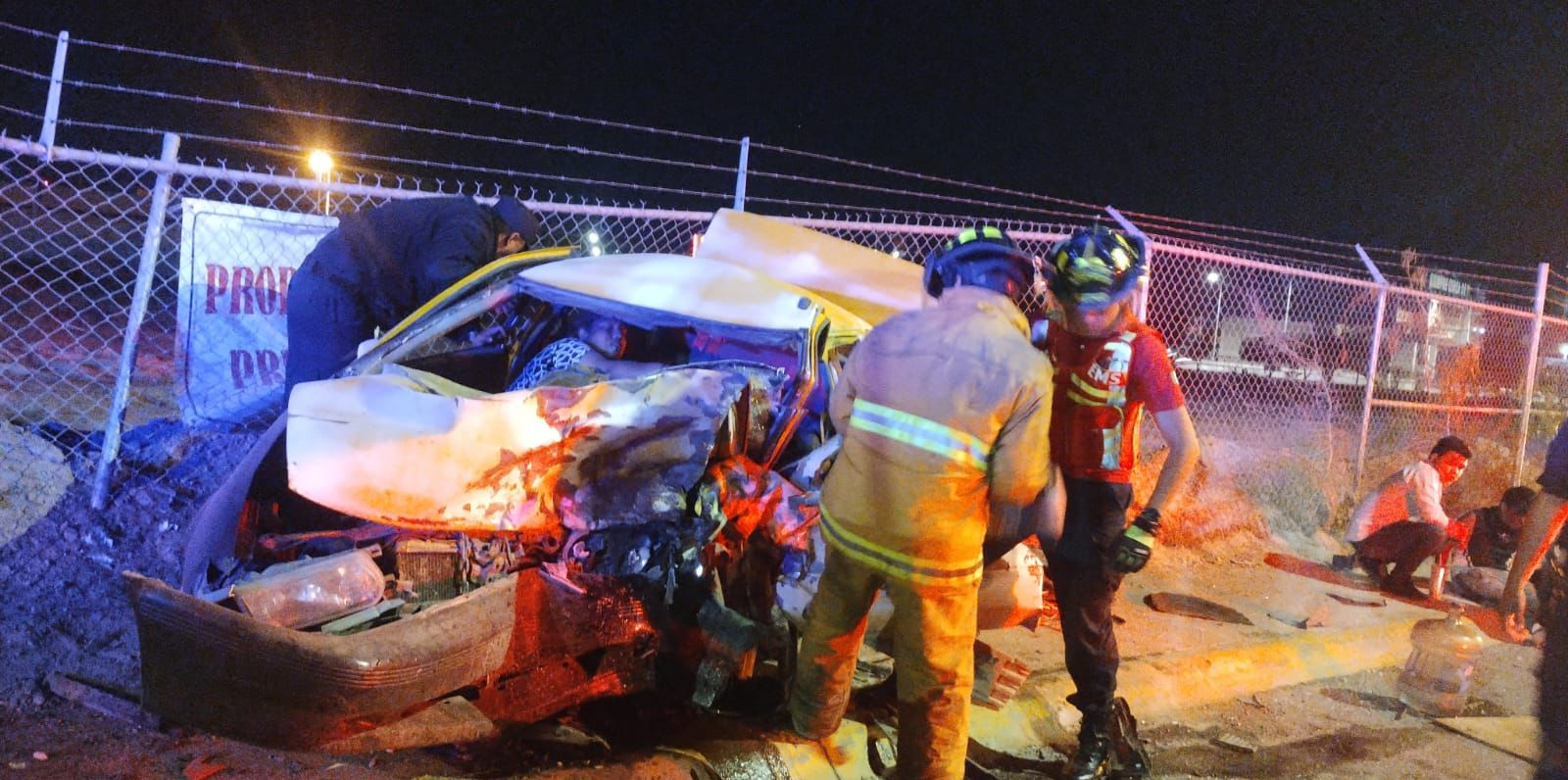 Un fuerte accidente frontal, se registró hace unos momentos, sobre el bulevar Masso Masso metros antes de llegar a la carretera Saltillo-Monterrey a un costado del Aeropuerto de #RamosArizpe donde el conductor de un vehículo Aveo circulaba a exceso de velocidad, por lo que al invadir el carril contrario, se impactó de frente contra un Nissan Tsuru donde viajaba una familia. Lamentablemente, el conductor afectado perdió la vida al instante, mientras que su esposa quedó prensada entre los fierros retorcidos, y sus tres pequeños hijos que viajaban en la parte trasera resultaron gravemente heridos. El responsable, según testigos, informaron que iba jugando carreras con otro vehículo por lo que al invadir carril contrario para intentar rebasar, sobrevino el fatal accidente. El lugar se encuentra acordando ante las diligencias de personal de la Fiscalía General del Estado.