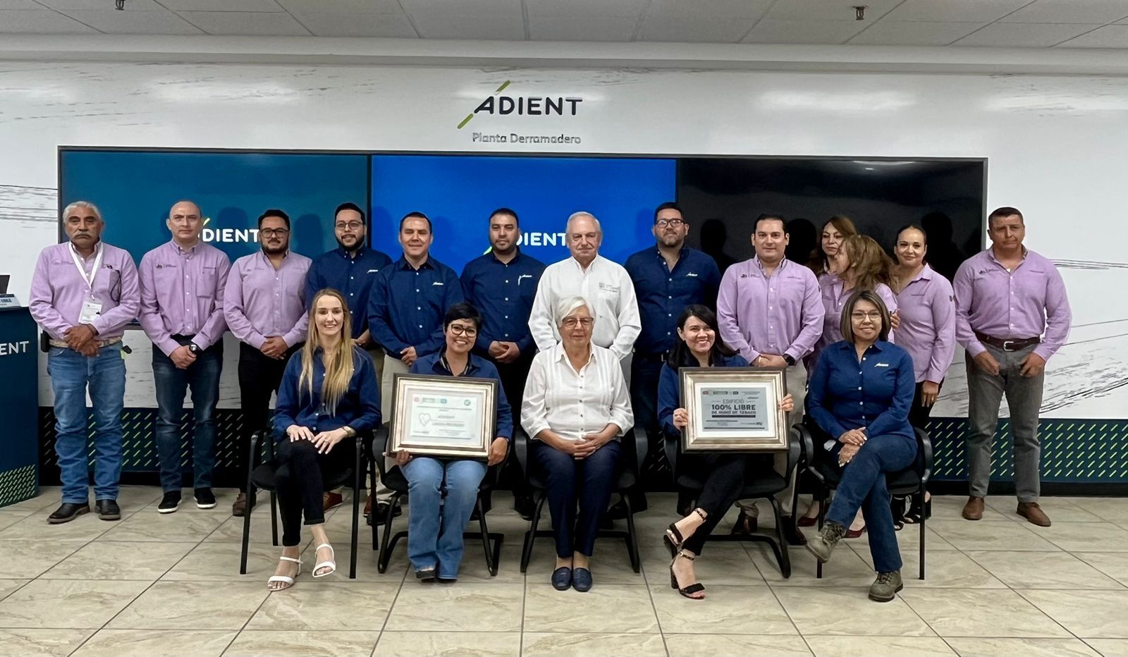 Por su parte, la Secretaria de Medio Ambiente de Coahuila, Eglantina Canales Gutiérrez, acentuó su queja y agradecimiento personal operativo y gerencial de la empresa ADIENT, por buscar alternativas y soluciones al bienestar de la salud de sus trabajadores y del medio ambiente, al ostentarse como una empresa Libre de Humo de Tabaco y Emisiones.
