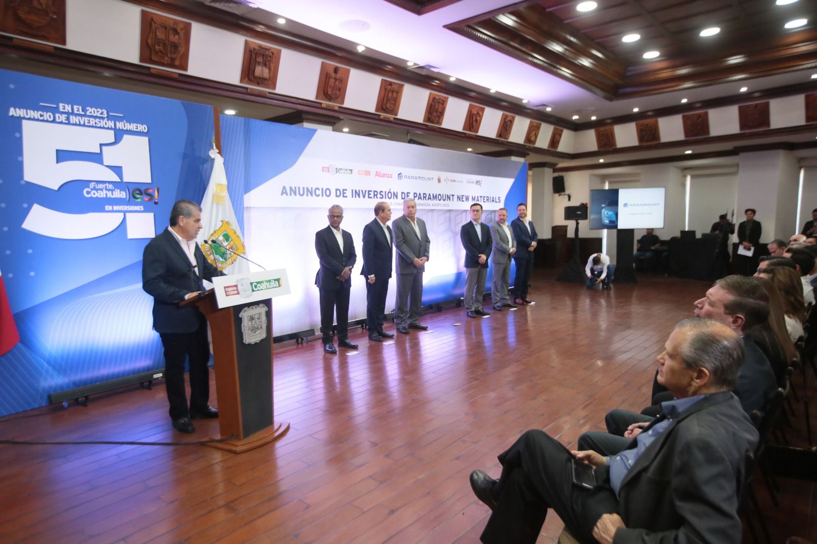 Saltillo, Coahuila de Zaragoza; a 17 de Agosto de 2023.- El gobernador Miguel Ángel Riquelme Solís anunció la inversión número 51 del 2023, con la llegada de la empresa Paramount New Materials al Parque Industrial Alianza, de Derramadero, con inversión de 200 millones de dólares y la generación de 1,225 nuevos empleos.