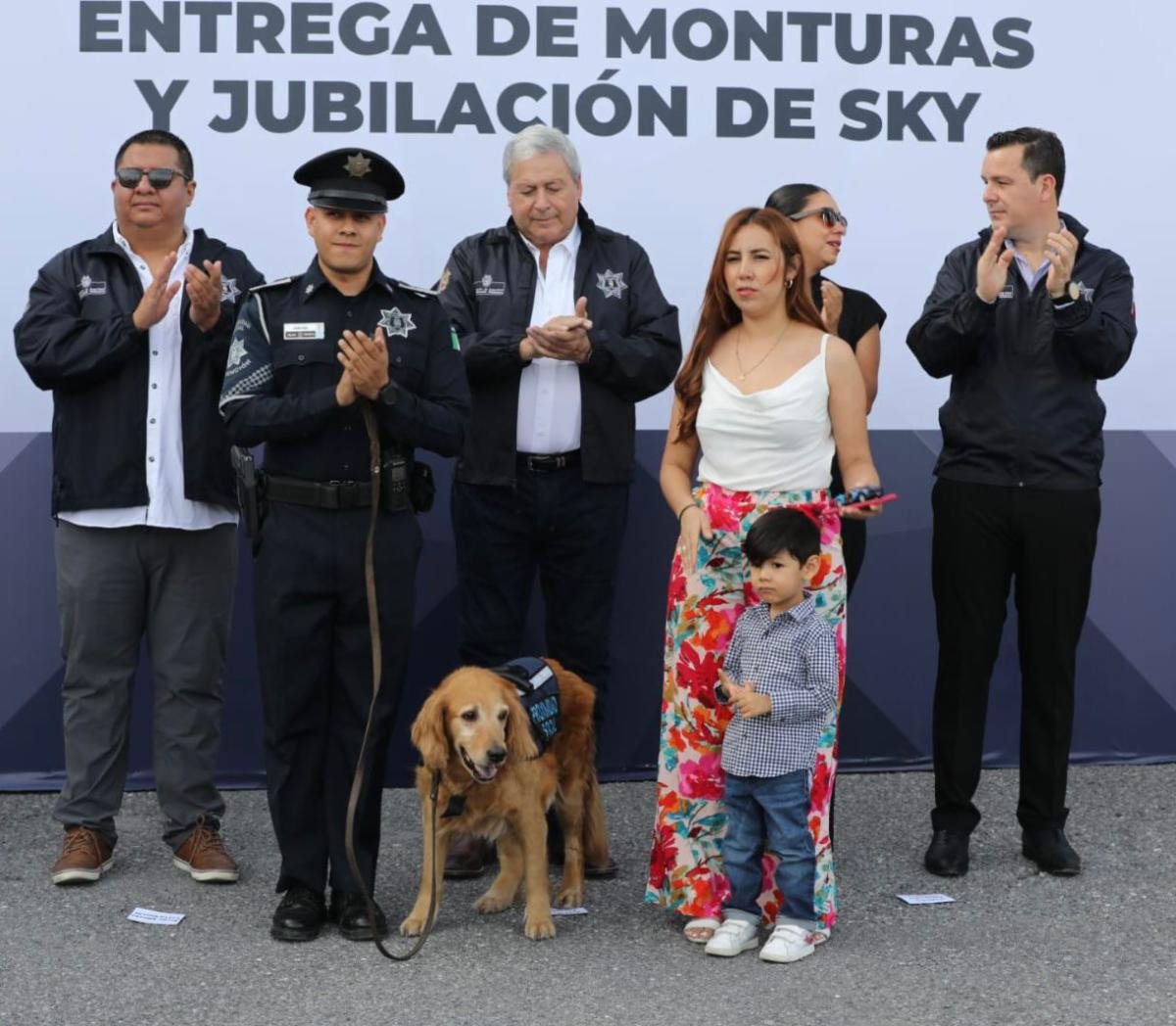 “Hoy por motivos de salud, el elemento canino Sky se retira, no sin antes reconocerle su entregada labor y excelencia en su desempeño. Nuestro agradecimiento también al oficial Leonardo Encina Lara por su compromiso y labor junto a Sky y, por supuesto, para todo el personal del agrupamiento K9”, dijo el alcalde.
