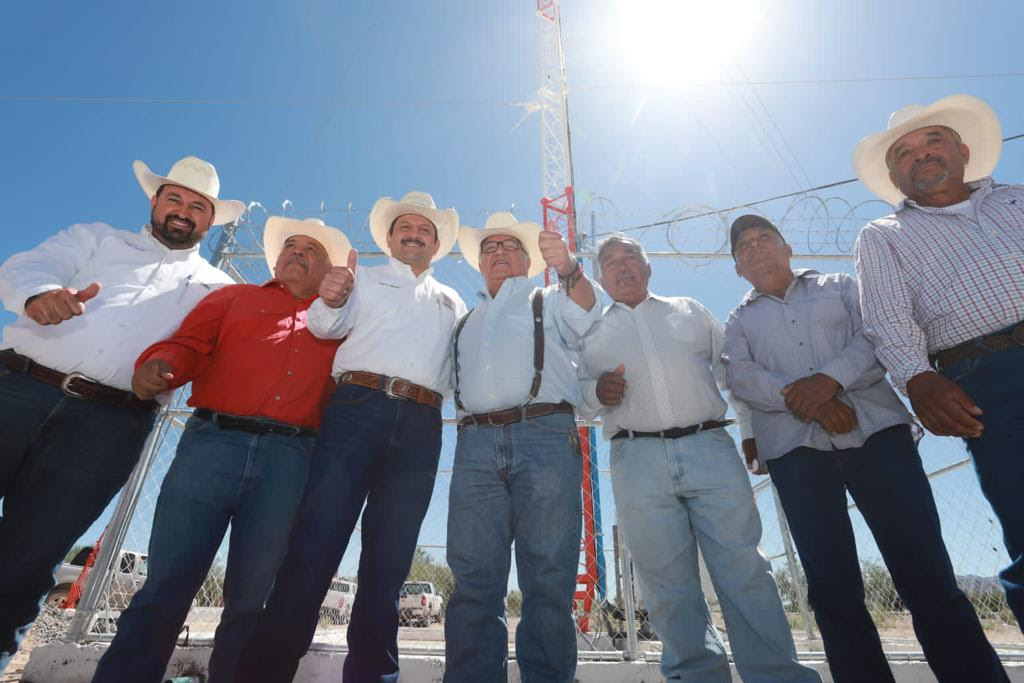 En el ejido La Ventura, por medio de una videollamada, el alcalde Chema Fraustro inauguró la antena celular de la compañía Telcel en la que saludó sin interrupciones de señal a los habitantes de las comunidades reunidas en el lugar.