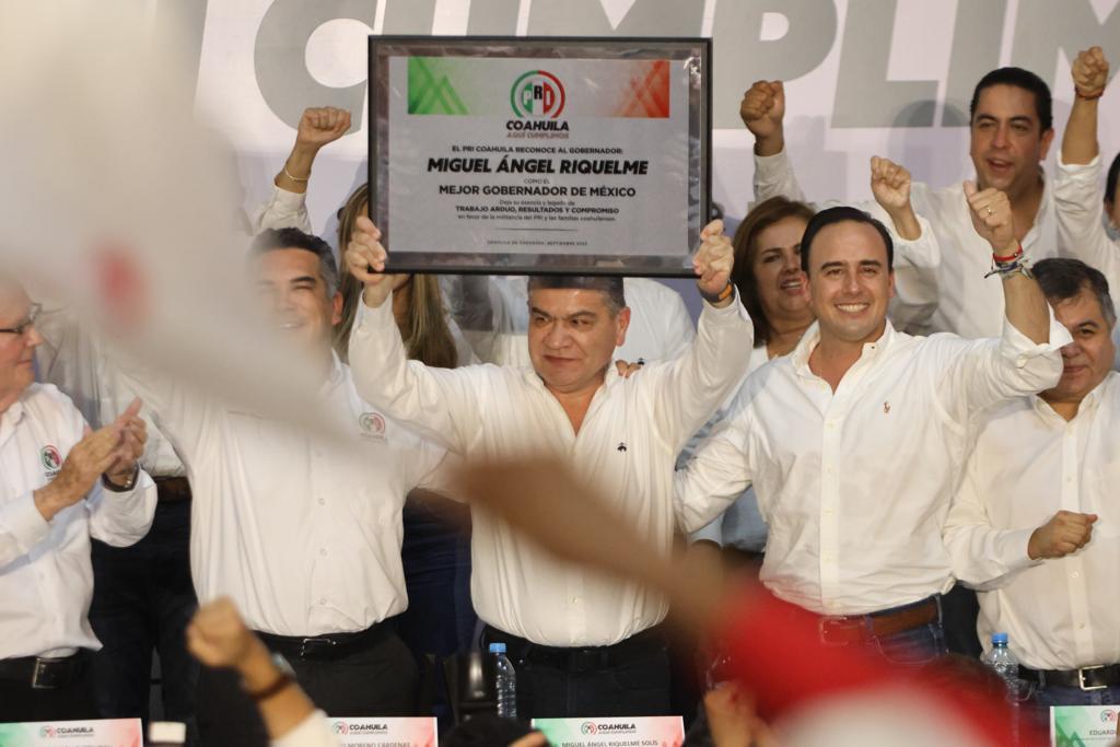 Celebran Consejo Político; rinden protesta Carlos Robles y Olivia Martínez a dirigencia del PRI Ganamos porque ciudadanizamos la política, afirma Manolo Jiménez Saltillo, Coahuila, 02 de septiembre del 2023.- Con Manolo Jiménez Salinas a Coahuila le irá mejor, aseguró el primer priista del estado, Miguel Ángel Riquelme Solís, al encabezar el Consejo Político Estatal que reunió al priismo de todo el estado y donde rindieron protesta Carlos Robles Loustaunau como presidente del Comité Directivo Estatal y Olivia Martínez Leyva como secretaria general. Al tomar protesta, el nuevo Presidente del PRI Coahuila, Carlos Robles Loustaunau, se comprometió a seguir por la ruta del triunfo en este proceso electoral que se avecina, poniendo el mismo empeño para mantener la entidad, como el estado con el mejor PRI de todo México. El primer priista de Coahuila, Miguel Ángel Riquelme Solís, expuso que Manolo Jiménez es un político ejemplar: “de quien todas y todos sabemos, defenderá lo más sagrado que tenemos, la seguridad, la tranquilidad y la paz de las familias”. Al acto se dieron cita el presidente nacional del PRI, Alejandro Moreno Cárdenas, alcaldes, alcaldesas, legisladores y legisladoras federales y locales, presidentes de partido, líderes de los sectores y las organizaciones, así como la militancia del mejor PRI de México. En el marco del Consejo Político Estatal, se hizo entrega de un reconocimiento al priismo coahuilense por haber logrado, con su trabajo, organización y unidad, la votación histórica de 765 mil votos a favor de Manolo Jiménez Salinas. Así mismo, se entregó un reconocimiento al Gobernador Miguel Ángel Riquelme Solís por su arduo trabajo, resultados y compromiso con la gente de Coahuila y ser considerado el mejor gobernador de México. En su intervención, el primer priista en el estado, Miguel Ángel Riquelme Solís, recalcó que el priismo de Coahuila es, ha sido, y lo seguirá siendo por muchos años más, el mejor PRI de México. “Con Manolo Jiménez vienen nuevos y mejores tiempos para Coahuila. Nuestro estado avanzará por la ruta de la legalidad, la gobernabilidad, el desarrollo social y el crecimiento económico a la delantera de los cambios nacionales; ha quedado también demostrado para todo el país, que, en la conformación de alianzas políticas y la integración de gobiernos de coalición, el mejor exponente es Manolo Jiménez Salinas”. “Lealtad y compromiso total con nuestra gente y con esta tierra bendita”.- Manolo Jiménez En su oportunidad, el Gobernador electo, Manolo Jiménez Salinas, expresó que el triunfo obtenido en las urnas no es obra de la casualidad, sino que se obtuvo porque existe un partido vivo y trabajando. “Todo el PRI, todo el tiempo, en todos lados, porque tuvimos a las mejores candidatas y candidatos, porque llevamos mas de 15 años trabajando cerca de nuestra gente, porque hubo una propuesta respaldada por buenos resultados. “Ganamos porque ciudadanizamos la política, pasamos de una alianza partidista a un gran frente ciudadano invencible. Coahuila fue el punto de encuentro. Mejorar la calidad de vida de nuestras familias fue nuestra principal causa. Ganamos porque tenemos un primer priista que hizo un buen gobierno, un gobernador que le entró con todo, que no se dejó seducir por el centro, que cerró filas con este proyecto”. Agregó que el triunfo se debió a que se cuenta con un primer priísta que hizo un buen gobierno. “Gobernador usted es un gran orgullo para nuestro partido. Muchas gracias por todo su apoyo y respaldo de siempre. ¡Que viva Miguel Riquelme!”, exclamó. Cada proceso electoral es diferente en sus actores y circunstancias, por eso si se obtuvo una votación histórica en 2023, el priismo no puede confiarse. “Por eso aquí ya nos estamos preparando para ganar la Presidencia, el Sena…