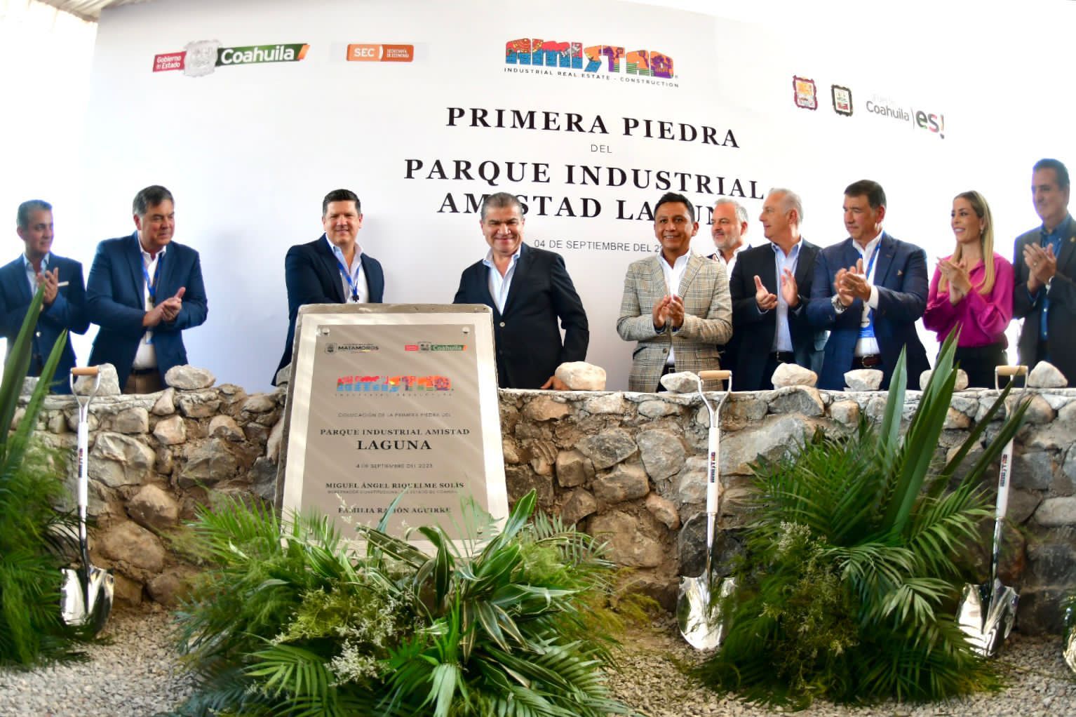 Coloca gobernador Miguel Riquelme primera piedra del Parque Industrial Amistad Laguna, con inversión de 80 millones de dólares.