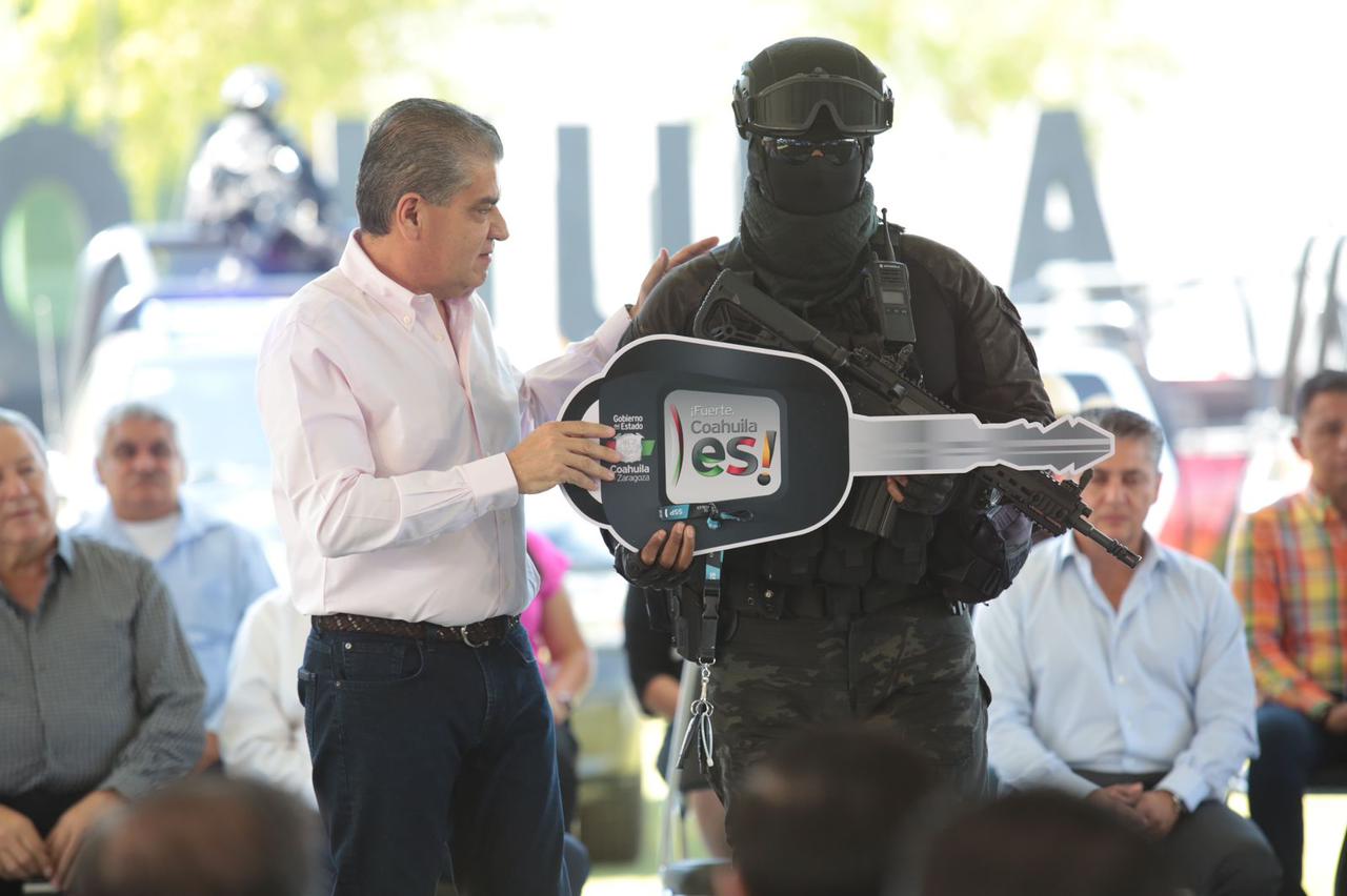 En la ceremonia recibieron unidades para la Seguridad Pública, los Ayuntamientos de Abasolo, Acuña, Candela, Castaños, Escobedo, General Cepeda, Guerrero, Hidalgo, Juárez, Lamadrid, Matamoros, Nava, Ocampo, Parras de la Fuente, Piedras Negras, Monclova, Ramos Arizpe, Sacramento, San Pedro de las Colonias, Viesca y Villa Unión.
