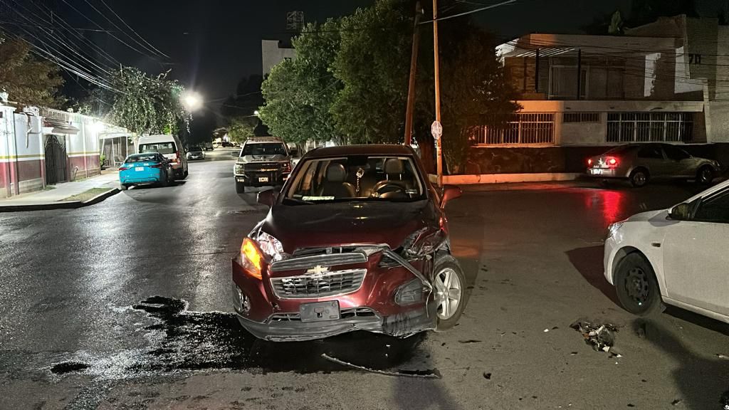 Un accidente entre dos vehículos, se registró la noche de este miércoles en el cruce de las calles Torreón y Colima de la República, pues el conductor de una camioneta Chevrolet, no respetó el señalamiento de alto, por lo que impactó a un automóvil Audi. Tras el impacto, se proyectó contra la barda de un domicilio pero por suerte no resultaron personas lesionadas, más que cuantiosos daños materiales.