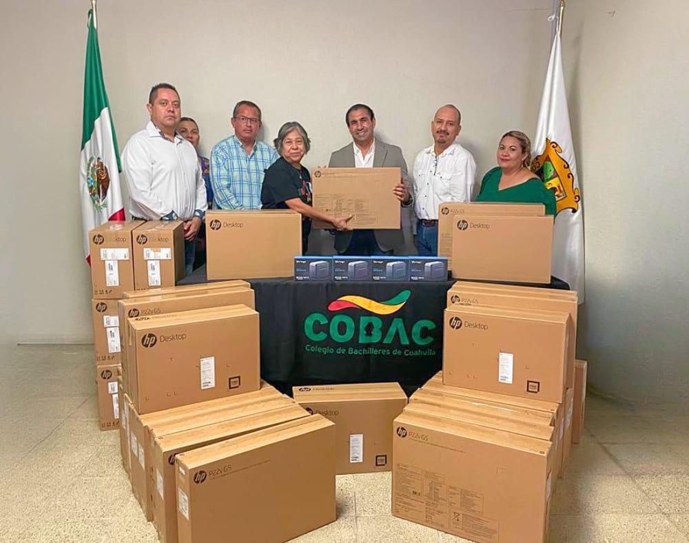 Saltillo, Coahuila de Zaragoza; a 20 de Septiembre de 2023.- Con el propósito de continuar la labor que docentes capacitados con International Youth Foundation y Academy CISCO repliquen en las aulas para que los alumnos desarrollen habilidades digitales mediante prácticas en Laboratorio de Informática, la Dirección General del Colegio de Bachilleres de Coahuila (COBAC) entregó 40 equipos de computadoras al plantel en Saltillo ‘Juan Francisco Ealy Ortiz’, que vienen a sumar y reforzar el trabajo colaborativo.