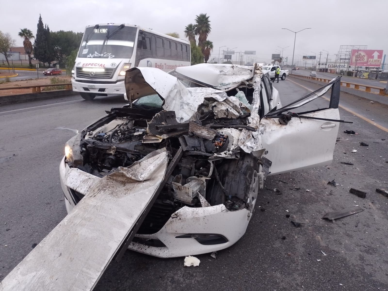Esta mañana, se registraron dos accidentes de manera simultánea, sobre ambos sentidos de la carretera Saltillo a Monterrey, donde el primero ocurrió de sur a norte, a la altura del Aeropuerto, siendo un alcance entre un vehículo Mazda y un transporte de personal; el saldo fue el conductor del auto con lesiones graves. Mientras que el segundo percance, fue una volcadura, de la cual el conductor de un automóvil Platina perdió el control, subió al camellón central, chocó contra una luminaria y finalmente brincó a los carriles contrarios. Paramédicos del cuerpo de Bomberos atendieron a las personas y oficiales municipales se hicieron cargo de los hechos, donde abanderaron el área ya que el tráfico se complicó por varias horas.