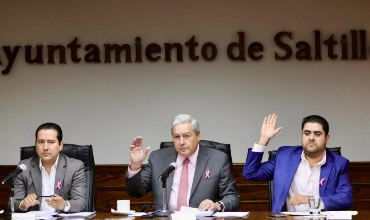 Saltillo, Coahuila de Zaragoza, a 19 de octubre de 2023.- Durante la Primera Sesión Ordinaria de octubre, el Cabildo de Saltillo aprobó por unanimidad el cobro de un peso por concepto de recargos por año en el impuesto predial, recolección de basura, Impuesto Sobre Ejercicio de Actividades Mercantiles, mercados, servicio de tránsito, sanciones administrativas y fiscales, entre otros.
