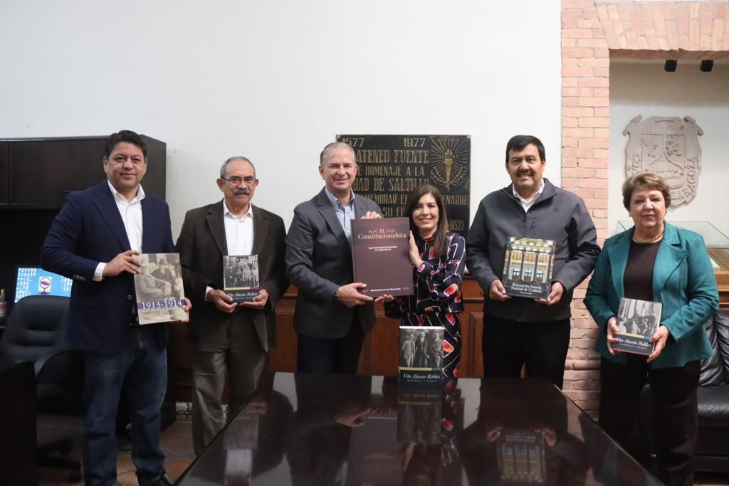 En el caso de la Benemérita Escuela Normal de Coahuila, se entregó un acervo de 1,061 libros, y al Centro Cultural Vito Alessio Robles, 64 colecciones de la biografía, en tres tomos, de don Vito Alessio.