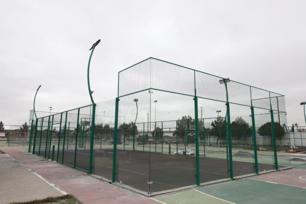Las canchas de pádel contarán con las medidas reglamentarias, pasto sintético, red y alumbrado para la práctica nocturna de este deporte.