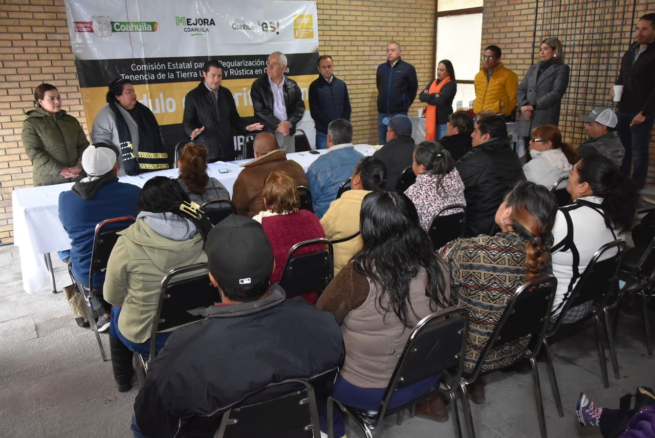 23 escrituras de la Colonia Nuevo Saltillo se firmaron en las oficinas de la Comisión Estatal para la Regularización de la Tenencia de la Tierra Urbana y Rústica de Coahuila, con la presencia del Secretario, Enrique Martínez y Morales, acompañado del Director de CERTTURC, Miguel Ángel Leal, y del propietario del terreno, Juan Gerardo Tovar Gutiérrez, dando certeza jurídica a las familias beneficiadas de Saltillo.