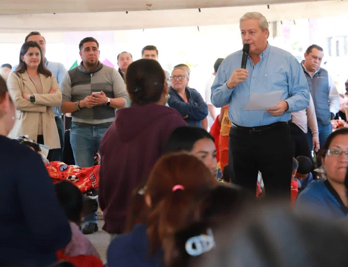 Chema Fraustro asistió acompañado del Diputado Jaime Bueno Zertuche, y de Beatriz Fraustro Dávila, presidenta honoraria del Voluntariado del DIF Saltillo, y ante las familias destacó el compromiso de su gobierno de establecer una política dedicada a atender las necesidades prioritarias de los saltillenses y mejorar así sus condiciones de vida.