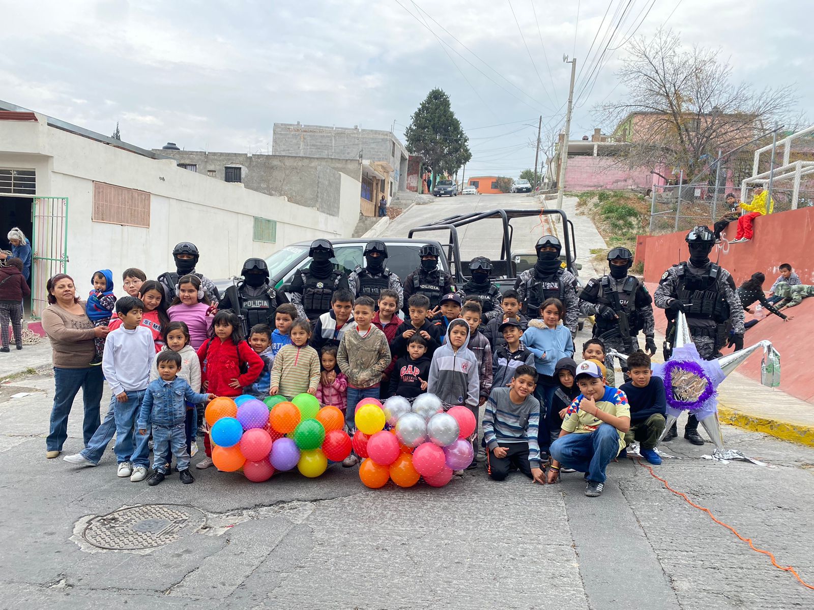 Saltillo, Coahuila; 25 de diciembre de 2023.–Como parte del reforzamiento del modelo de seguridad, el Gobierno de Coahuila a través de la Secretaría de Seguridad Pública y las diversas corporaciones que la integran, realiza diariamente acciones de proximidad social a lo largo de todo el Estado, teniendo como resultado el acercamiento con miles de ciudadanos.
