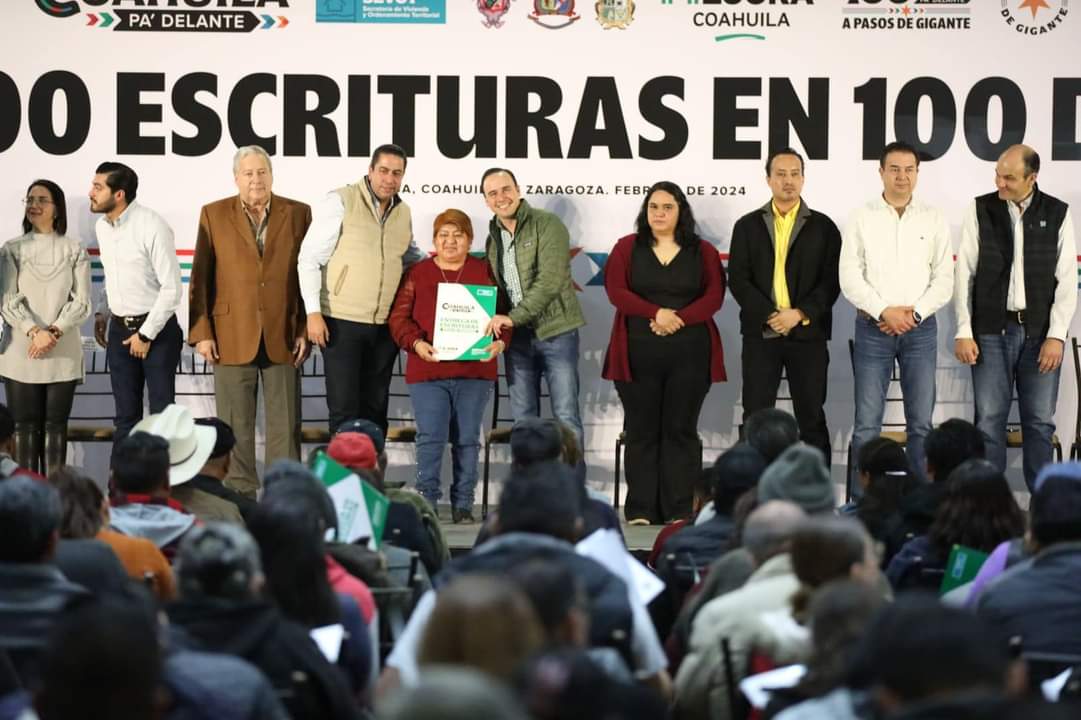 “Hoy es un momento especial para las 404 familias que reciben la constancia jurídica de su patrimonio, de su casa, de su terreno, de su hogar”, señaló, y agregó que todo su equipo seguirá trabajando para gestionar más escrituras para la gente de todas las regiones de Coahuila.