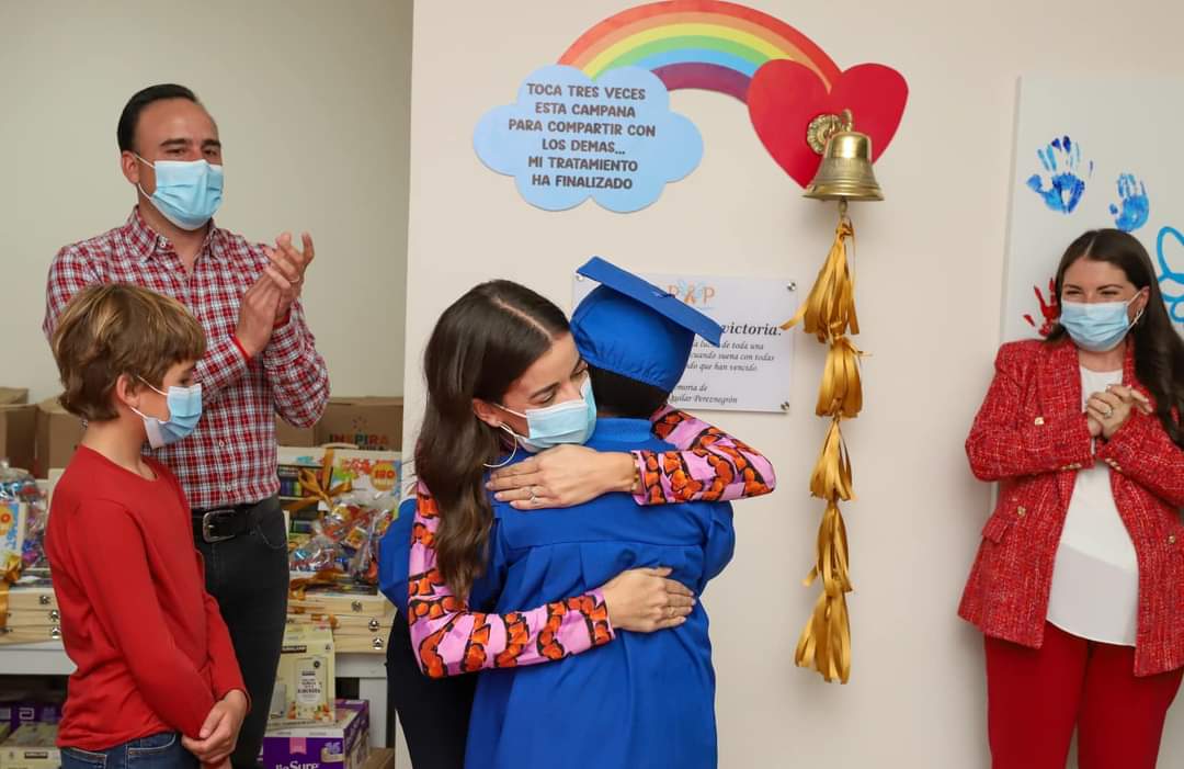 Durante la estancia del mandatario estatal y su esposa Paola Rodríguez, se tocó la campana para anunciar el término de los tratamientos de los pequeños Iker y Osmar, quienes afortunadamente concluyeron su proceso.