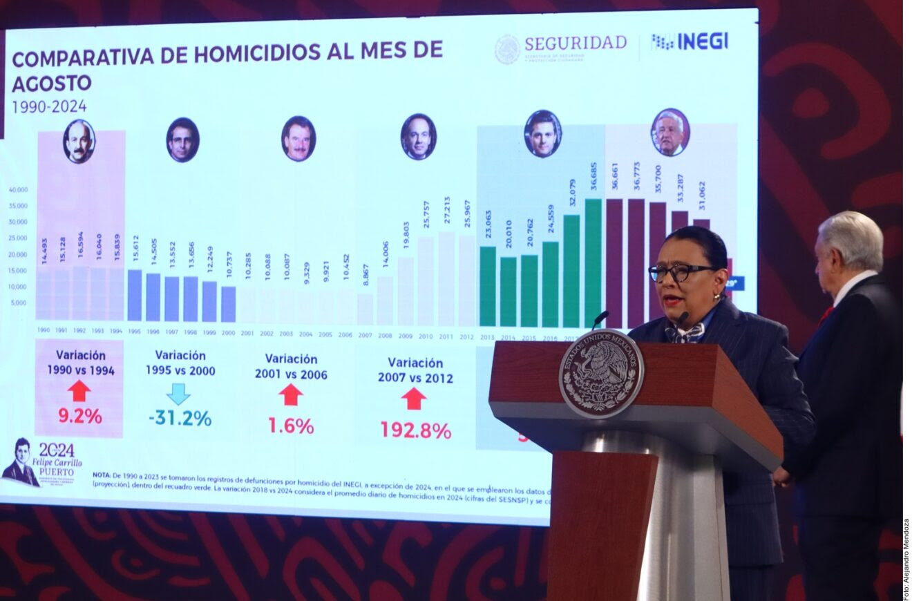 La secretaria de Seguridad, Rosa Icela Rodríguez, explicó que los índices registrados este año pueden compararse con los niveles que registraba el País en 2016.