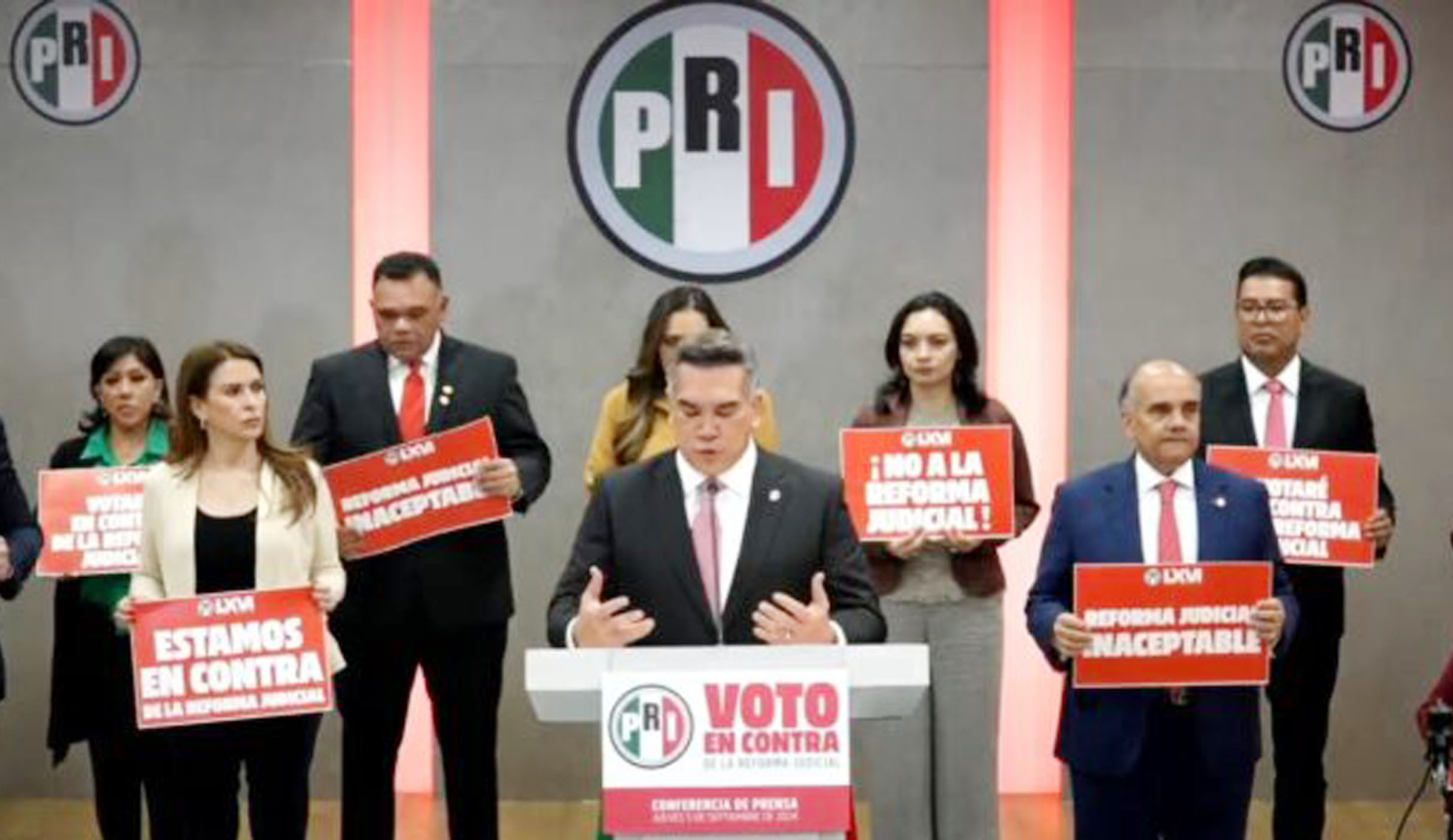 “Esto significa que en el bloque de los 15 senadoras y senadores del Partido Revolucionario Institucional votaremos en contra de la minuta de la propuesta de la reforma al Poder Judicial. A nosotros nadie nos dobla y nadie nos echa para atrás”, sostuvo.