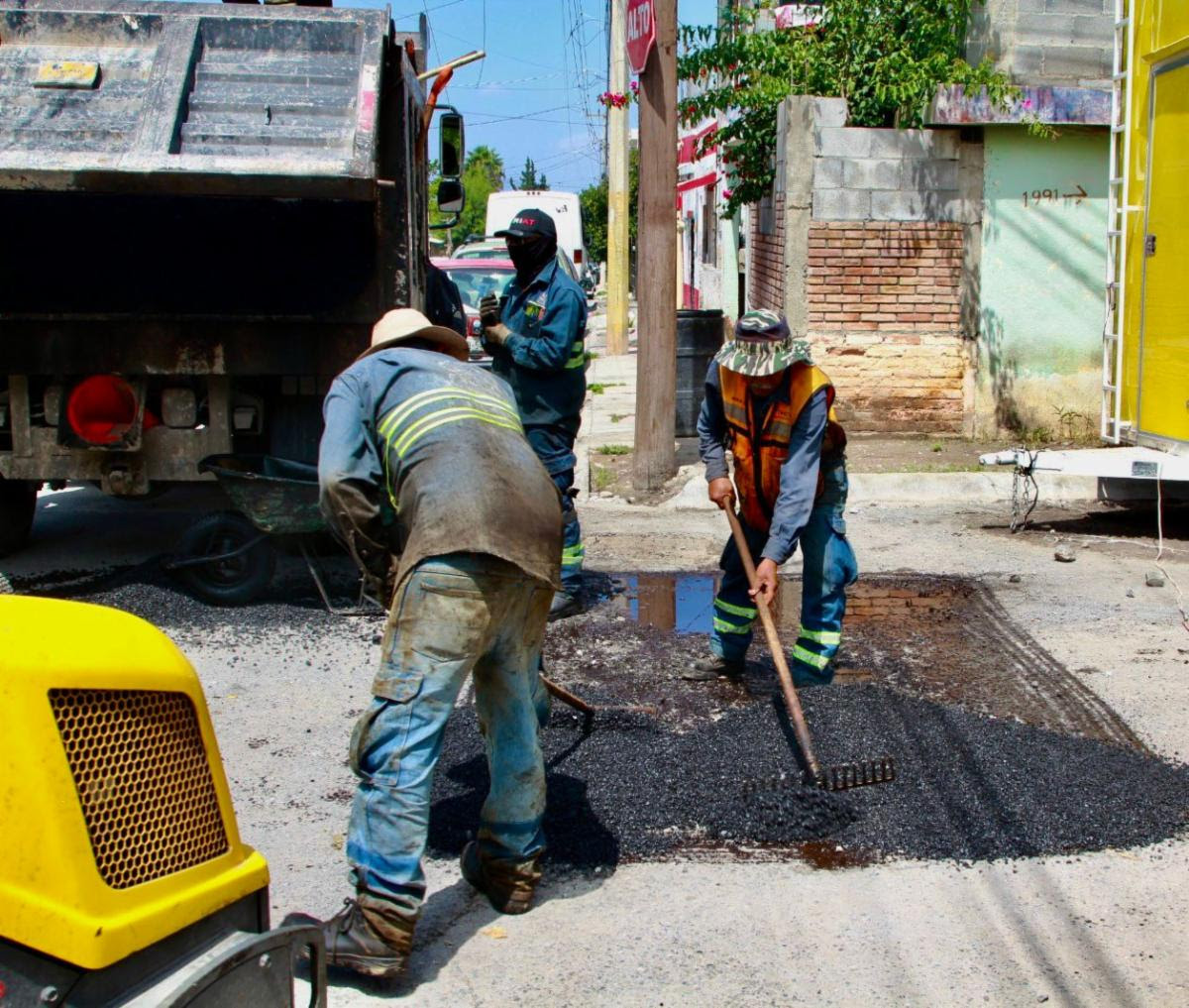 El director de Infraestructura y Obras Publicas mencionó que 10 cuadrillas realizan labores de bacheo en colonias como Postal Cerritos, Valle Dorado y Bonanza, entre muchas otras.