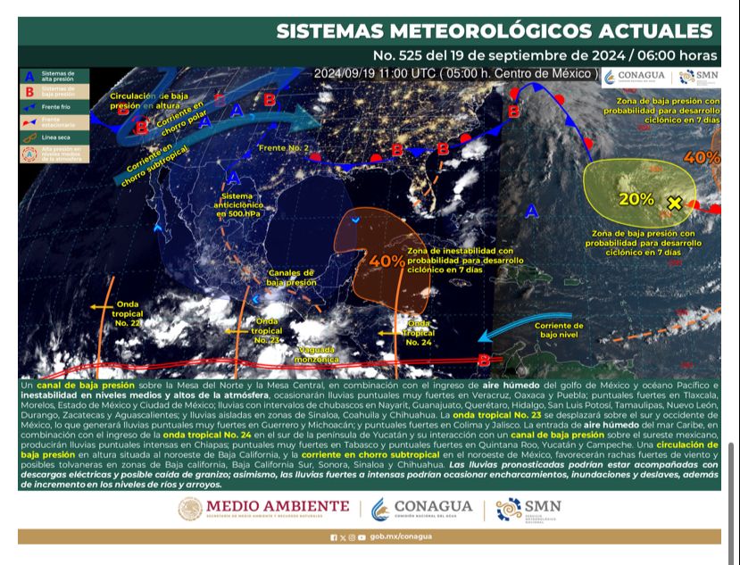 Se exhorta a la población a tomar precauciones ya estar atenta a los avisos emitidos por el Servicio Meteorológico Nacional y atender las indicaciones de las autoridades competentes.