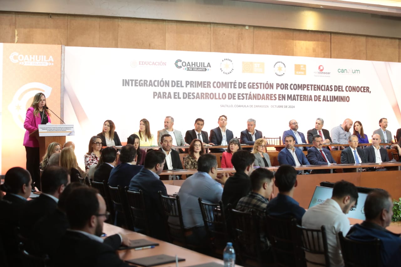 Saltillo, Coahuila de Zaragoza, a 08 de octubre de 2024.- Coahuila posee liderazgos en diversos rubros (seguridad, paz laboral y mano de obra calificada, entre otros), a los que se suma la instalación del Primer Comité de Gestión por Competencia de la Cámara Nacional de la Industria del Aluminio (CANALUM), que busca certificar a cuando menos 18 mil trabajadores.