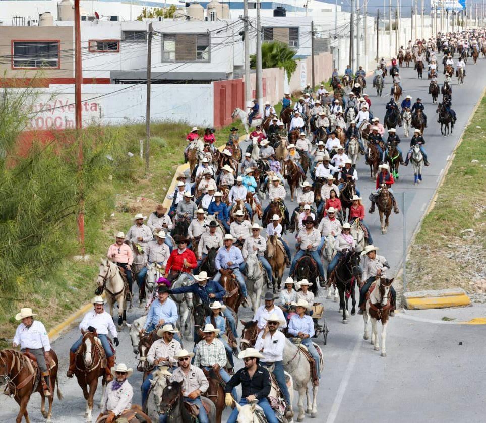 En esta ocasión la cabalgata resultó todo un éxito al sumar cientos de jinetes en el segundo día de actividades del Rodeo Saltillo, a cuyo espectáculo se añade lo mejor de la gastronomía norteña, así como emotivas montas y destrezas ecuestres, además de la soberbia presentación de los caballos de alta escuela.