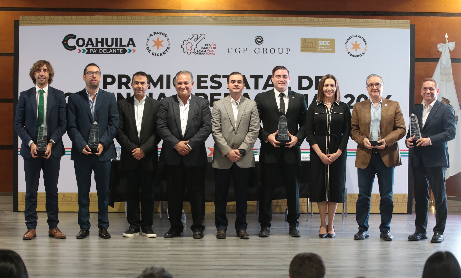 Saltillo, Coahuila de Zaragoza, a 30 de octubre de 2024.- A través de la Secretaría de Economía, el gobierno de Manolo Jiménez Salinas, entregó a cinco empresas de Coahuila el Premio Estatal de Excelencia Operacional, en su IV Edición.