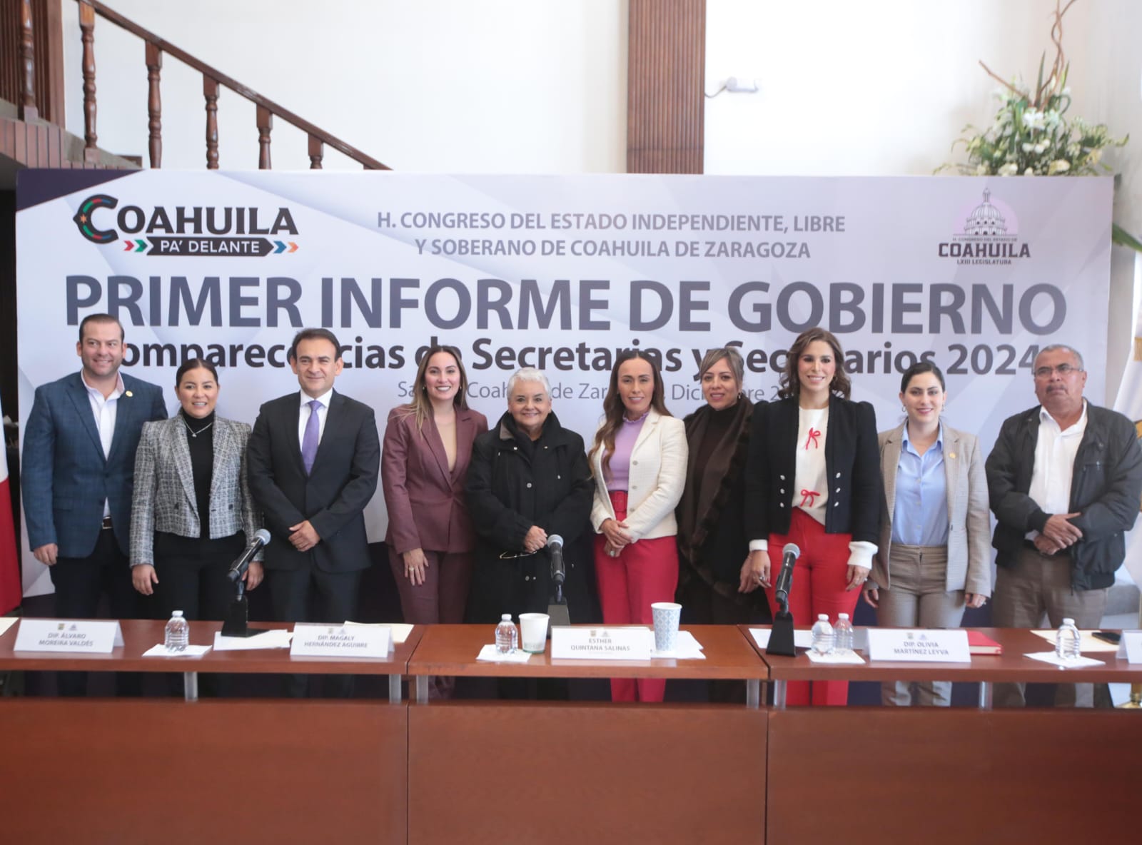 En el evento, estuvieron presentes, María Bárbara Cepeda Boehringer, Secretaria de Vinculación Ciudadana, Proyectos de Innovación Social e Inversión Público Productiva; Jesús María Montemayor Garza, Secretario de Desarrollo Rural; Marisol Martínez González, Secretaria de Fiscalización y Rendición de Cuentas del Estado; Ignacio Covarrubias Cabello, Subsecretario de Infraestructura Social en la Secretaría de Inclusión y Desarrollo Social; Ignacio Castillo Cárabes, Subsecretario de Vinculación y Servicios Educativos en la Secretaría de Educación; Francisco Osorio Morales, Subsecretario de Vinculación y Servicios de Salud; César Iván Moreno Aguirre, Jefe de Gabinete y Proyectos Estratégicos del Municipio de Saltillo. Síndicas y Regidores en el Ayuntamiento, así como el equipo Mejora.