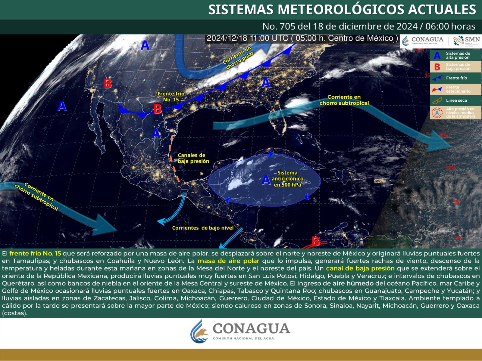 De acuerdo con el pronóstico emitido por el Servicio Meteorológico Nacional, se esperan las siguientes condiciones:
