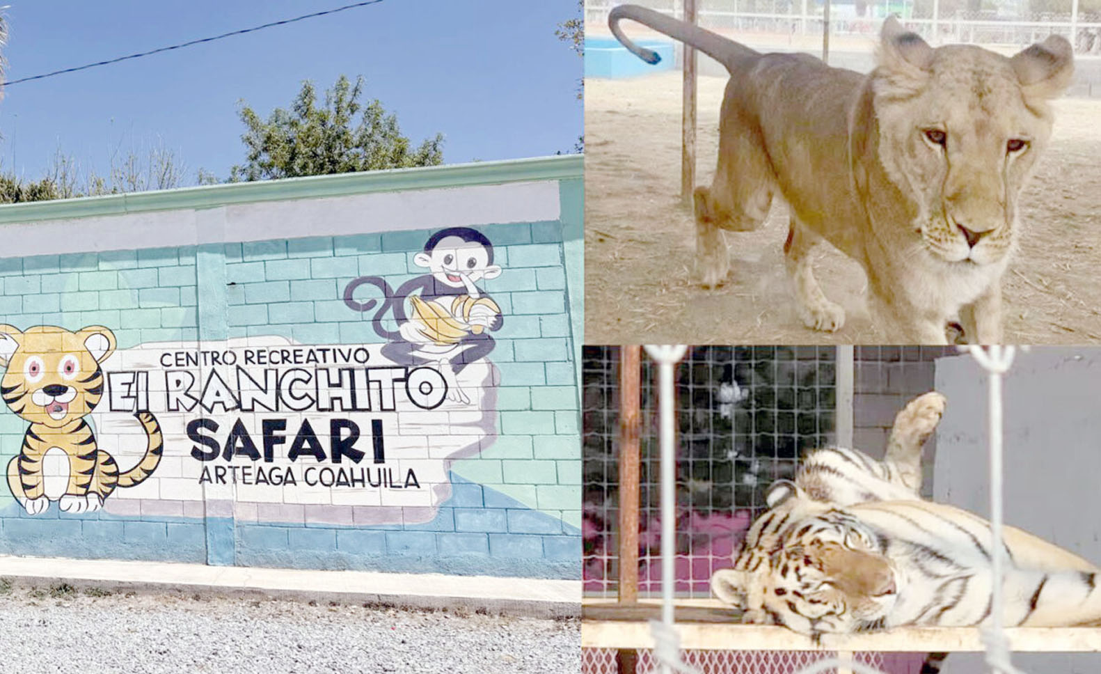 El espacio, conocido como El Ranchito Safari, exhibe varias especies de animales, entre ellos un león y un tigre, pero no cuenta con registro ni de la Secretaría de Medio Ambiente de Coahuila, ni de SEMARNAT