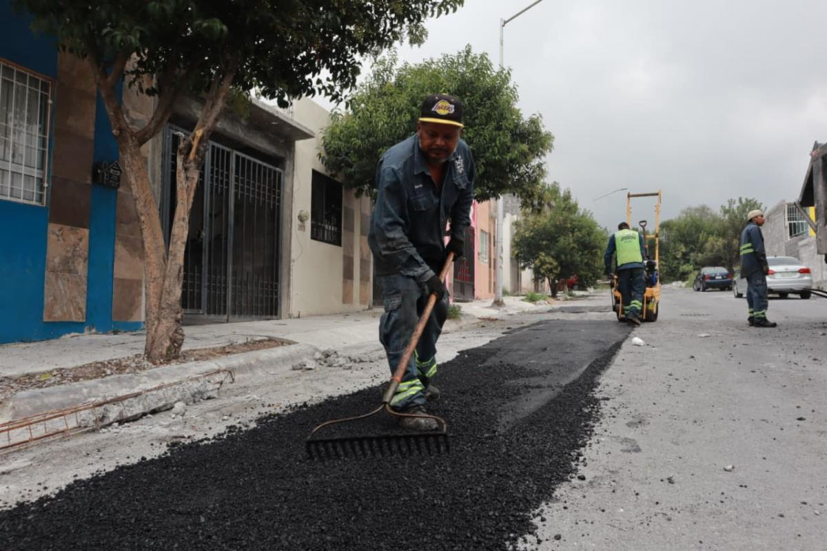 Este martes, cuadrillas de la Dirección de Infraestructura y Obra Pública reparó el pavimento afectado por las recientes lluvias, al cubrir los baches que se presentaban en la calle Claveles, de la colonia Girasol.