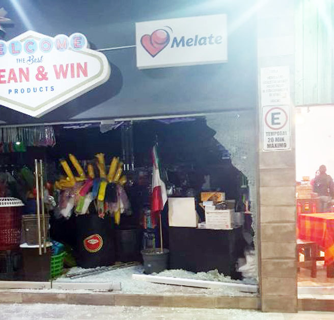 La tranquilidad de la noche de este martes se vio interrumpida cuando un vehículo se estrelló contra el cristal de un negocio ubicado sobre el bulevar José María Rodríguez, casi en la esquina con Musa de León.