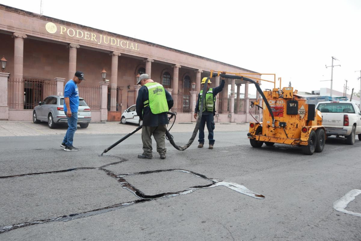 REFUERZAN LABORES DE BACHEO CON APLICACIÓN DE SELLA GRIETAS