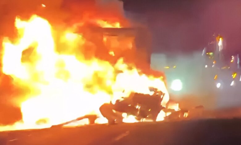 El conductor apenas tuvo tiempo de orillarse antes de que el fuego se apoderara de la cabina. De inmediato, la densa columna de humo fue visible a varios kilómetros de distancia, obligando a detener la circulación en el tramo Saltillo-Zacatecas, cerca del kilómetro 330.