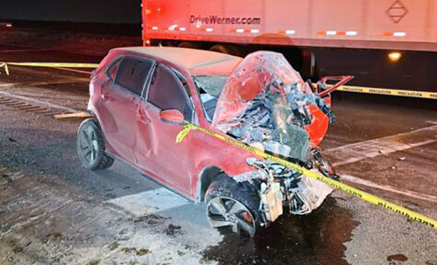 El percance ocurrió la noche del miércoles y trascendió a la madrugada del jueves, los sucesos se desarrollaron cuando un vehículo Volkswagen tipo sedán, línea Polo, color rojo con placas de Coahuila, se impactó de frente contra un tractocamión Kenworth color amarillo, con razón social Transervicios Logísticos del Norte (TLN) y domicilio en Guadalupe, Nuevo León.